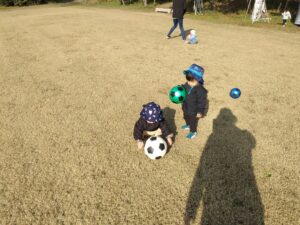 「おーいボールで遊ぼーよー!!」や「あっちにお花あったよ!」と友だちに話をして楽しんでいましたよ😄