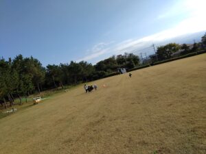 ひろーーーーーい広場でサッカーをしたり、端から端まで走ってみたり、