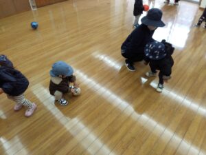 雪が降ってもゆうゆう壱番館さんのホールで体を動かして楽しくあそんでいます😄